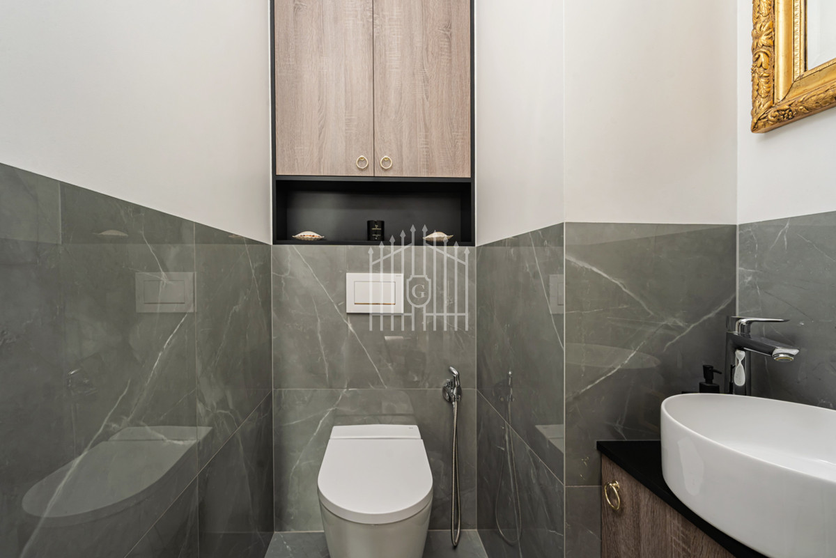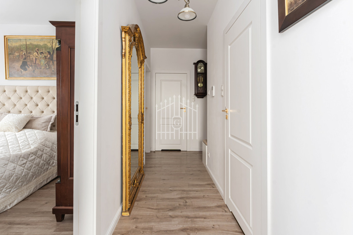 Apartament został zaprojektowany z dbałością o każdy detal — wykończony z materiałów najwyższej jakości, w ponadczasowej, spójnej stylistyce.
