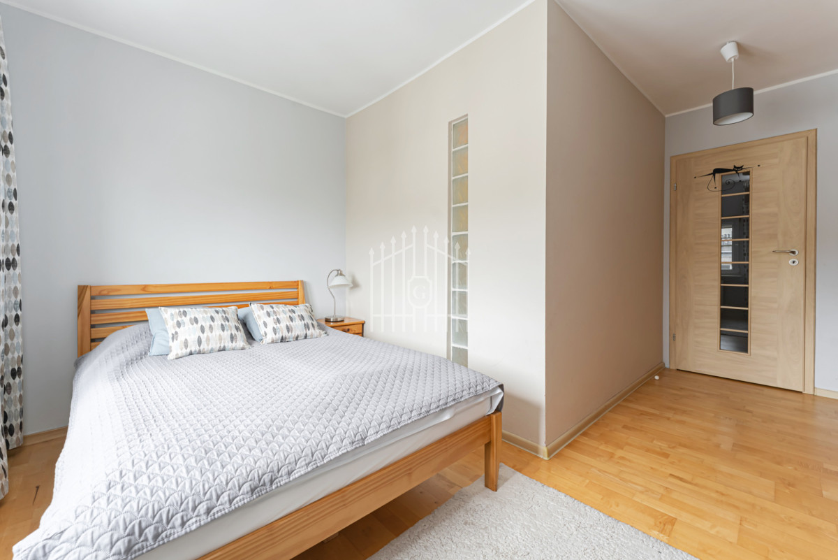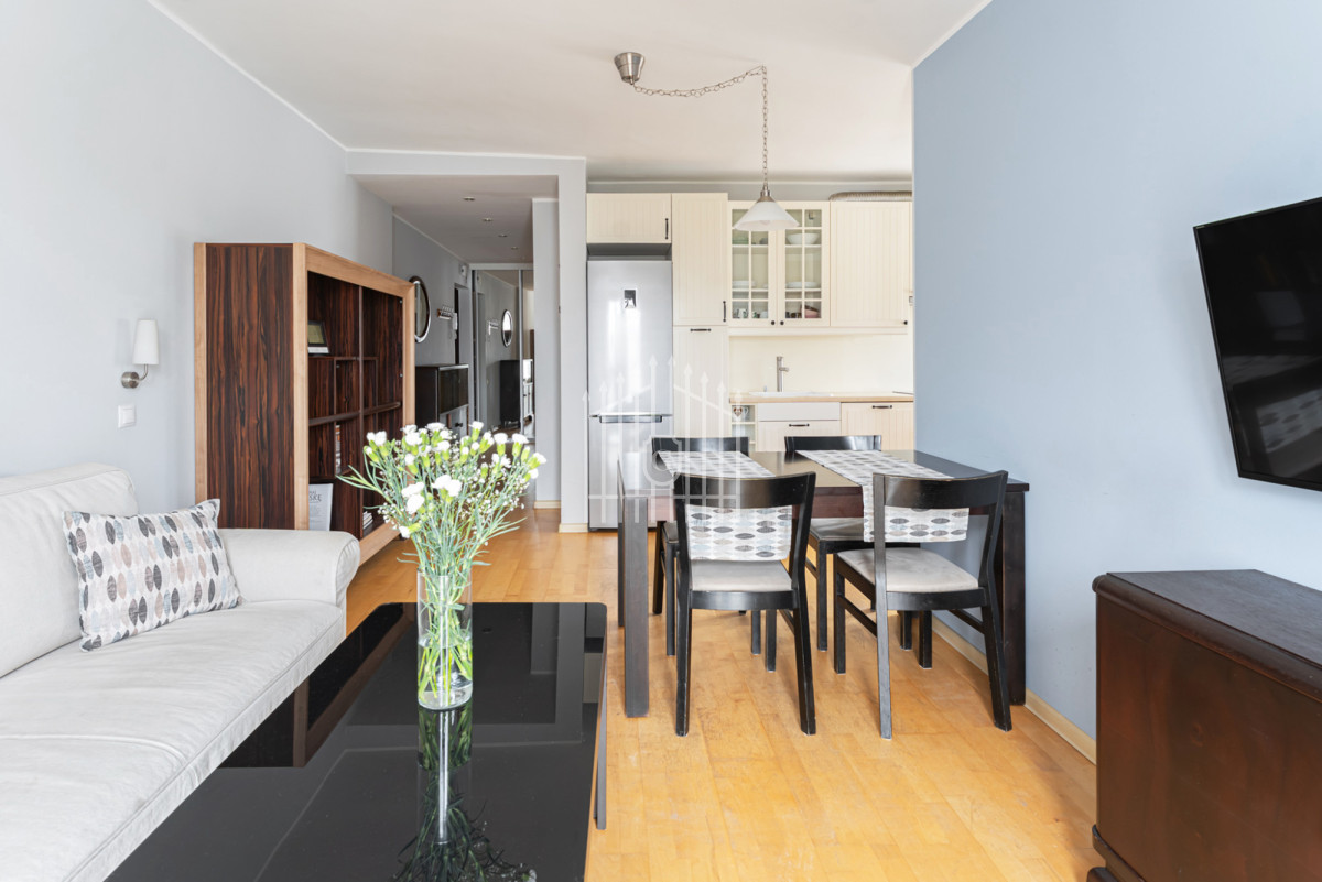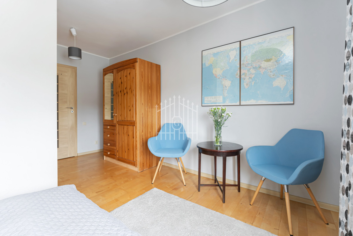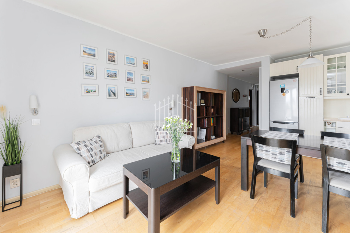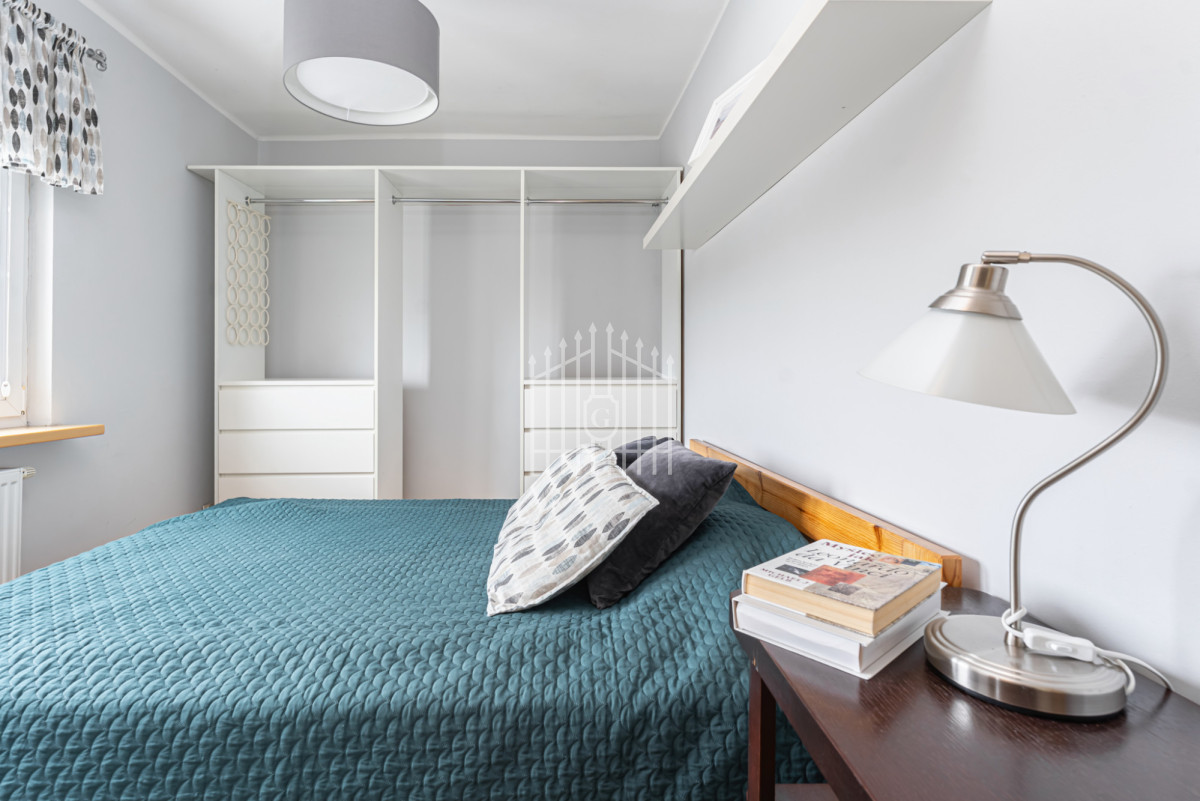Mieszkanie jest w pełni umeblowane i gotowe do zamieszkania bez żadnych nakładów. Na wyposażeniu znajdują się: kanapa, stół z krzesłami, łóżka, szafy, regały, telewizor i sprzęt RTV. Wnętrza są przytulne, ciepłe i zadbane - na podłodze położona została elegancka drewniana deska, która dodaje charakteru i domowego klimatu.